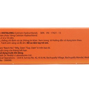 Histalong 10mg trị viêm mũi dị ứng, mề đay (2 vỉ x 10 viên)