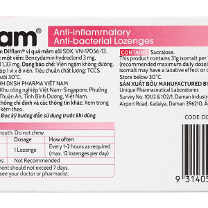 Viên ngậm kháng viêm Difflam vị quả mâm xôi giảm đau họng (1 vỉ x 8 viên)