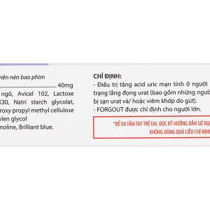 Forgout trị tăng Acid Uric mạn tính, viêm khớp do gút (2 vỉ x 15 viên)