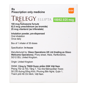 Bột hít phân liều Trelegy Ellipta 100/62,5/25 mcg giảm triệu chứng COPD lọ 30 liều hít