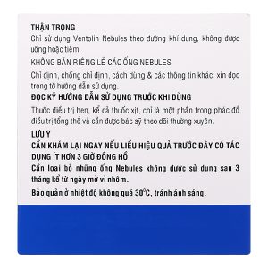 Dung dịch khí dung Ventolin Nebules 2.5mg trị, ngừa co thắt phế quản (30 ống x 2.5ml)