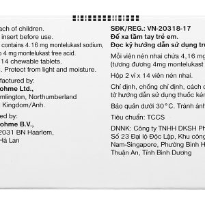 Viên nhai Singulair 4mg dự phòng và trị hen suyễn (2 vỉ x 14 viên)
