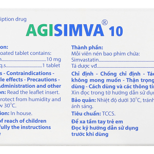 Agisimva 10 trị tăng cholesterol máu, xơ vữa động mạch (3 vỉ x 10 viên)
