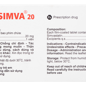 Agisimva® 20mg trị tăng cholesterol máu, làm chậm tiến triển xơ vữa (3 vỉ x 10 viên)
