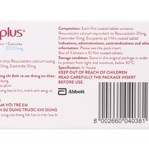 Lypstaplus 20/10mg điều trị tăng cholesterol máu nguyên phát (3 vỉ x 10 viên)