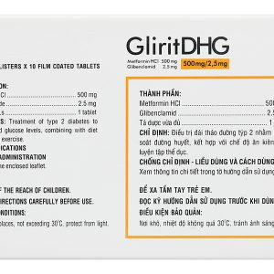 GliritDHG 500mg/2.5mg điều trị đái tháo đường tuýp 2 (3 vỉ x 10 viên)