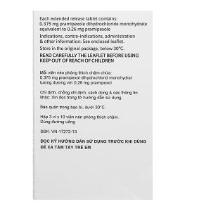 Sifrol 0.375mg trị các dấu hiệu và triệu chứng của bệnh Parkinson (3 vỉ x 10 viên)