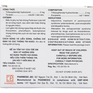 Trihexyphenidyl 2mg trị phụ trợ hội chứng Parkinson (5 vỉ x 20 viên)