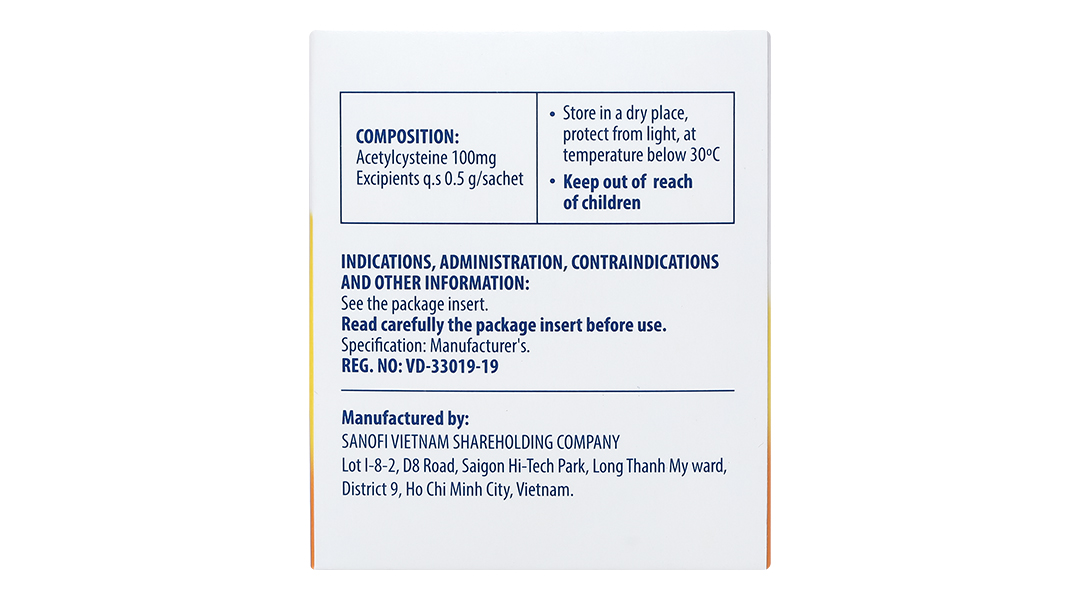 Phải giám sát chặt chẽ người bệnh có nguy cơ phát hen nếu dùng acetylcysteine cho người có tiền sử dị ứng. Khi điều trị với acetylcysteine có thể xuất hiện nhiều đàm loãng ở phế quản, cần phải hút để lấy ra nếu người bệnh giảm khả năng ho. Nguy cơ xuất hiện sốc phản vệ sau khi dùng thuốc. Cần thận trọng khi sử dụng ở những bệnh nhân bị loét dạ dày – tá tràng. Nôn và buồn nôn do thuốc có thể làm tăng nguy cơ xuất huyết tiêu hóa trên bệnh nhân đã có bệnh lý này từ trước, và bởi vì nguy cơ về mặt lý thuyết là các chất tiêu nhầy có thể gây tổn thương hàng rào niêm mạc dạ dày. Suy gan: Độ thanh thải toàn phần của acetylcysteine trên bệnh nhân bị xơ gan suy giảm đáng kể và nửa đời thải trừ gần như gấp đôi so với nhóm chứng khỏe mạnh. Hiện không có thông tin xác định liều tối ưu trên những đối tượng này. Thuốc có chứa lactose; bệnh nhân bị bệnh di truyền hiếm gặp của chứng bất dung nạp galactose, thiếu hụt Lapp lactase hoặc kém hấp thu glucose – galactose không nên dùng thuốc này. Acetylcysteine có thể gây sai lệch kết quả xét nghiệm xác định salicylates máu, ketone niệu. – Thai kỳ và cho con búCó thai: các kết quả nghiên cứu trên động vật thí nghiệm cho thấy rõ thuốc không gây quái thai; tuy nhiên, các dữ liệu này không cho phép suy rộng ra trên người. Acetylcysteine đi qua hàng rào nhau thai và được phát hiện trong máu cuống rốn. Như một biện pháp thận trọng, nên tránh sử dụng acetylcysteine trong thời kỳ mang thai. Nuôi con bằng sữa mẹ: Hiện không có thông tin liên quan đến sự bài tiết thuốc trong sữa mẹ, tránh dùng trong lúc nuôi con bằng sữa mẹ do chưa có các dữ liệu. Trong trường hợp tốt thật cần thiết sử dụng hãy cân nhắc đến lợi ích của mẹ và nguy cơ có thể có đối với thai nhi và trẻ được nuôi bằng sữa mẹ. – Tương tác thuốcViệc phối hợp một thuốc long đàm, tiêu nhầy với các thuốc trị ho không có hoặc có làm giảm bài tiết phế quản (tác dụng giống atropin) là không hợp lý, bởi vì giảm phản xạ ho có thể dẫn đến tích tụ dịch tiết phế quản. Than hoạt tính có thể làm giảm tác dụng của acetylcysteine. Thử nghiệm in vitro khi pha trộn kháng sinh cephalosporin và acetylcysteine, cho thấy có một lượng kháng sinh bị bất hoạt. Lưu ý khi sử dụng, nên dùng kháng sinh uống ít nhất 2 giờ trước hoặc sau khi uống acetylcysteine. Việc sử dụng đồng thời nitroglycerin và acetylcysteine gây hạ huyết áp đáng kể và dẫn đến giãn mạch tạm thời và có thể gây nhức đầu. Acetylcysteine là một chất khử nên tương kỵ hóa học với chất oxy-hóa. Acetylcysteine cũng tương kỵ với một số kim loại như sắt, đồng, và cao su, trypsin, chymotrypsin. Cần tránh thuốc tiếp xúc với các chất đó. |