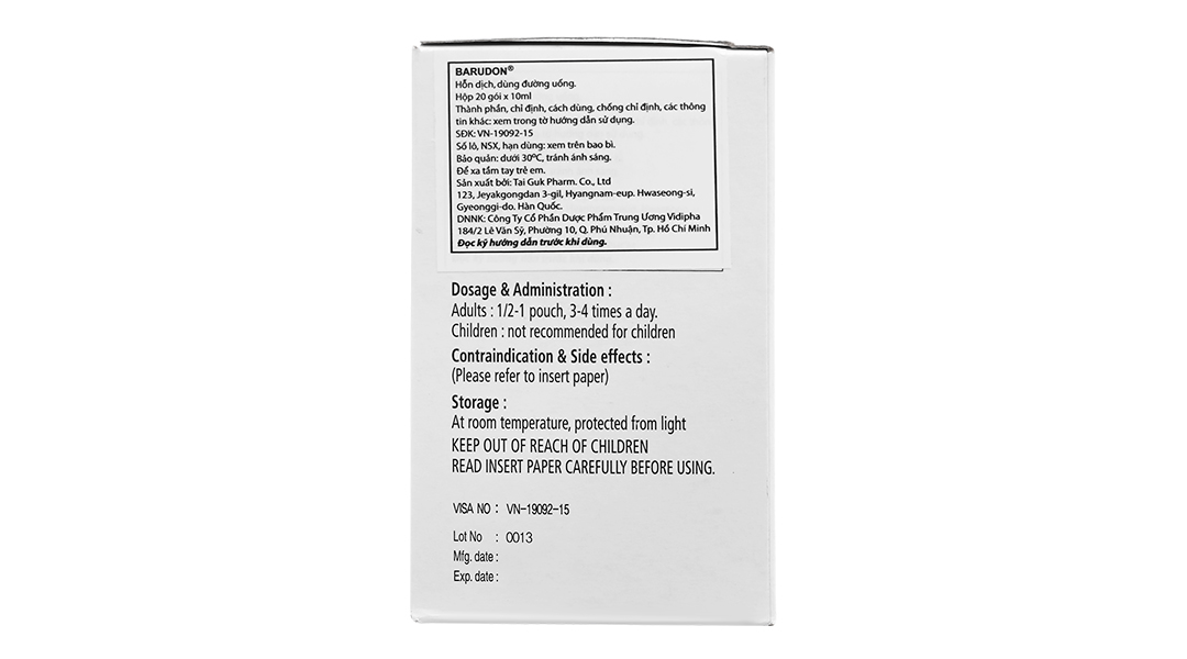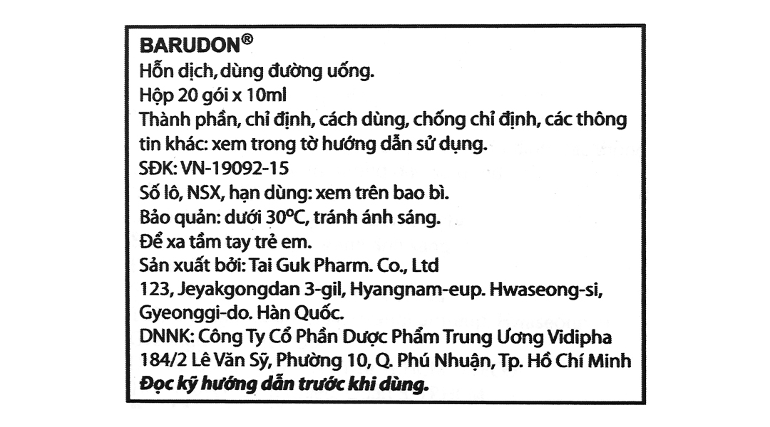 Hỗn dịch uống Barudon Susp giảm đau nhanh trong viêm dạ dày (20 gói x 10ml)