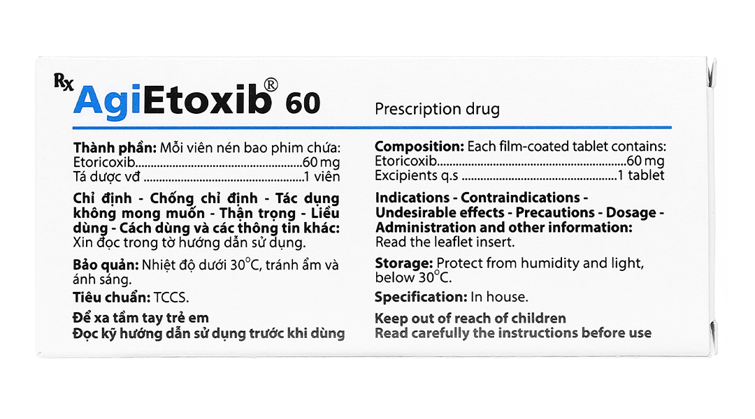 - Để giảm thiểu nguy cơ xuất hiện biến cố bất lợi, cần sử dụng AgiEtoxib ở liều hàng ngày thấp nhất có hiệu quả trong thời gian ngắn nhất có thể.