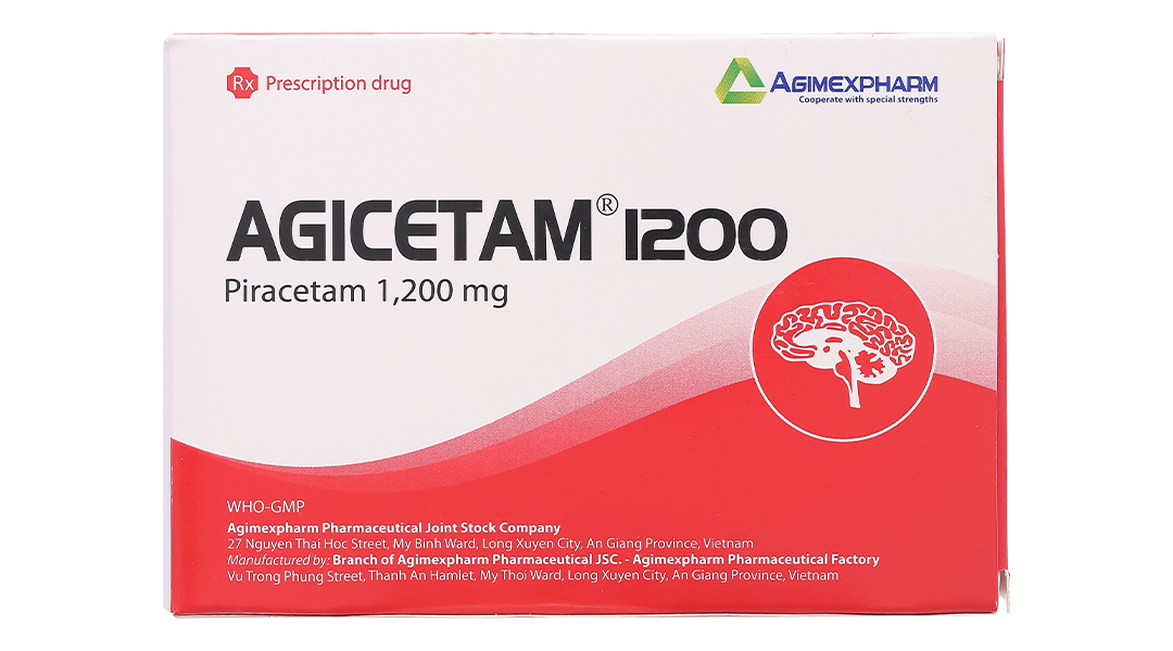 Agicetam 1200 trị triệu chứng chóng mặt, nghiện rượu (3 vỉ x 10 viên)