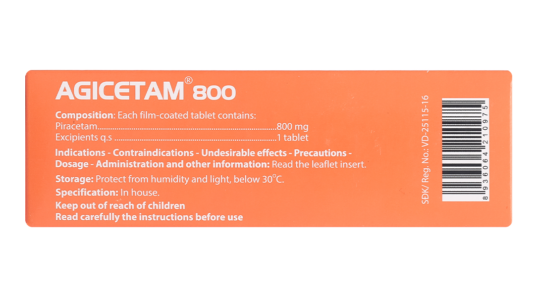 Mỗi viên AGICETAM 800 chứa 800mg Piracetam.