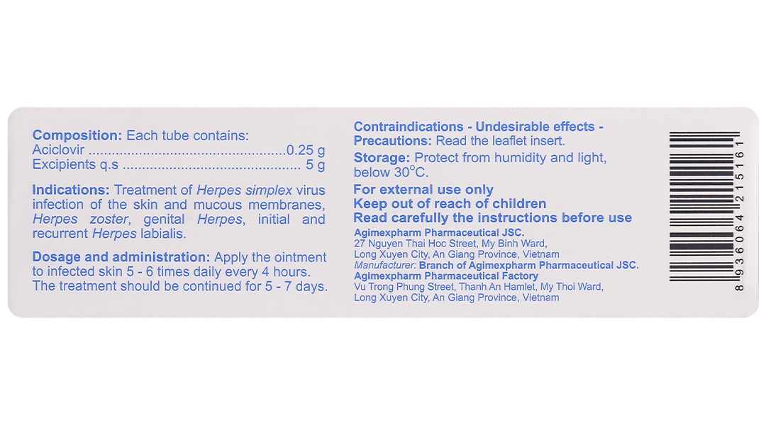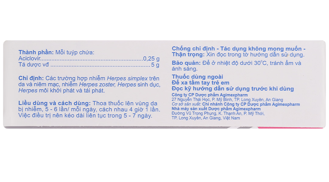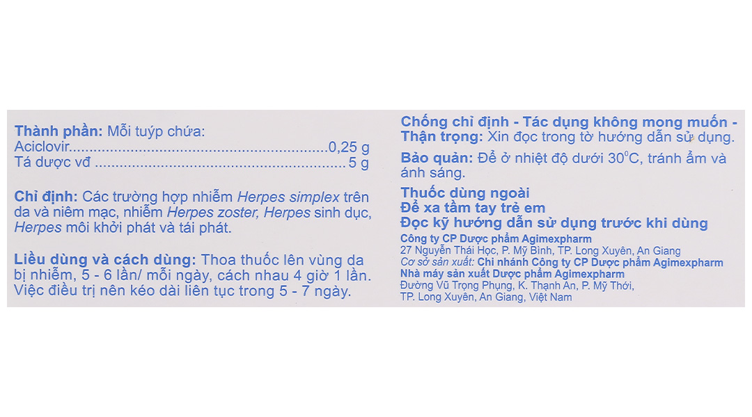 Mỗi tuýp Agiclovir 5% 5g chứa: