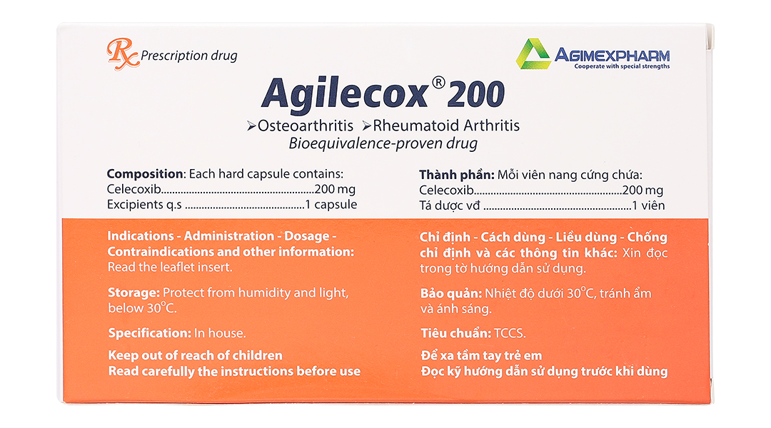 Agilecox 200 điều trị thoái hoá khớp, viêm khớp dạng thấp (2 vỉ x 10 viên)
