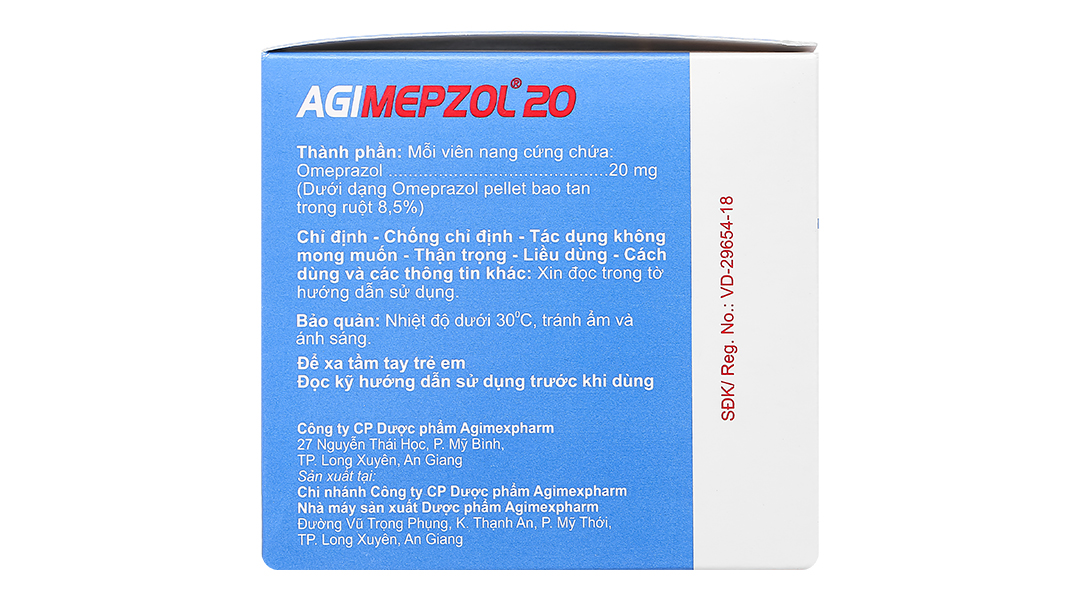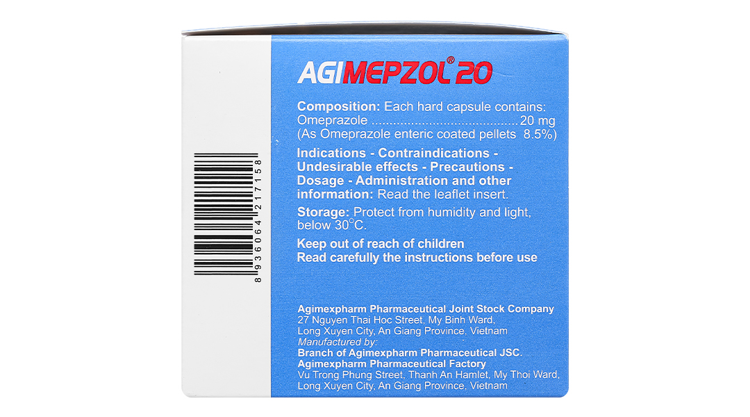 - Omeprazol 20 mg (dưới dạng Omeprazol pellet bao tan trong ruột 8,5%).