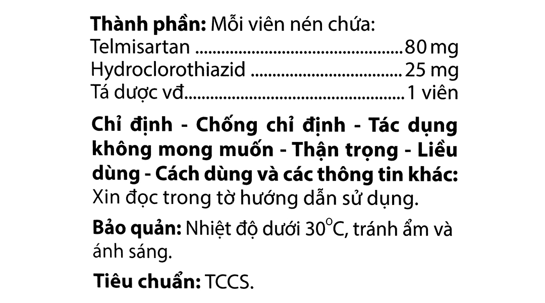 - Nếu cần có thể tăng liều lên đến 160 mg telmisartan và 25 mg hydroclorothiazid (dùng dạng phối hợp thích hợp hoặc dùng các dạng thuốc riêng lẻ).