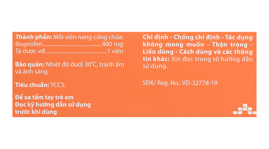 Công dụngGiảm đau, chống viêm từ nhẹ đến vừa như đau đầu, đau răng, viêm khớp dạng thấp, hạ sốt,...