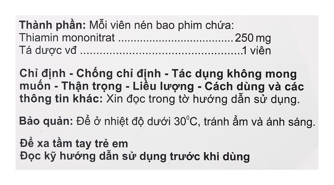 Công dụngTrị bệnh do thiếu thiamin như viêm đa dây thần kinh do rượu, bệnh Beriberi,...
