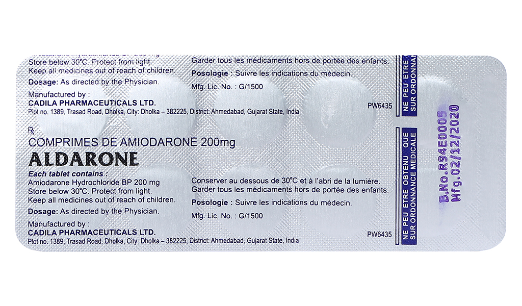 Aldarone 200mg trị loạn nhịp tim (10 vỉ x 10 viên)