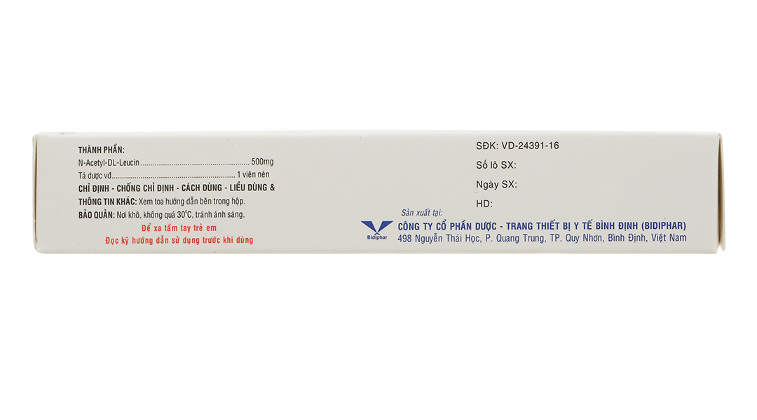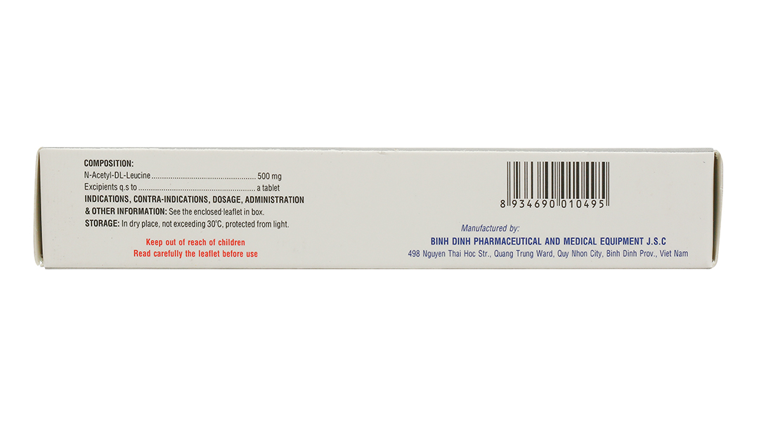 N-Acetyl-DL-Leucin đã được sử dụng từ lâu trong lâm sàng để giảm sự mất thăng bằng và điều trị các cơn chóng mặt với bất kỳ nguyên nhân: Meniere, thiếu máu não, do rượu, say tàu xe, viêm dây thần kinh tiền đình, viêm tai giữa cấp và mạn tính, nhức nửa đầu, hạ huyết áp tư thế, tăng huyết áp, do ngộ độc, do thuốc (streptomycin, gentamycin,…).