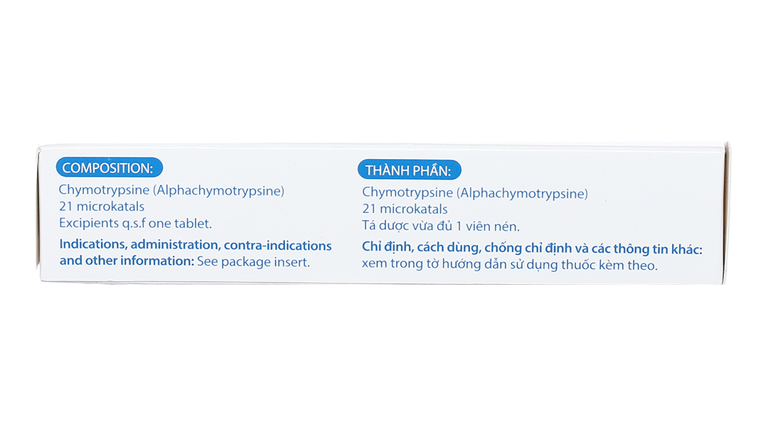 Chymotrypsin hay alphachymotrypsin 21µkatals (hay 25 đơn vị C.Hb/viên).
