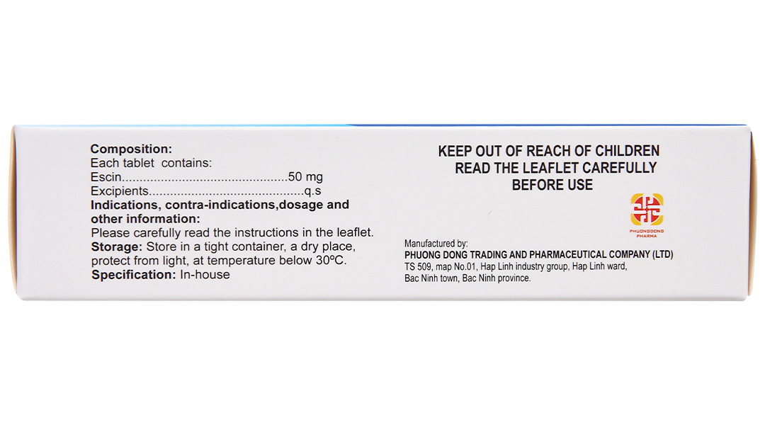 Thành phần dược chất: Escin 50mg.