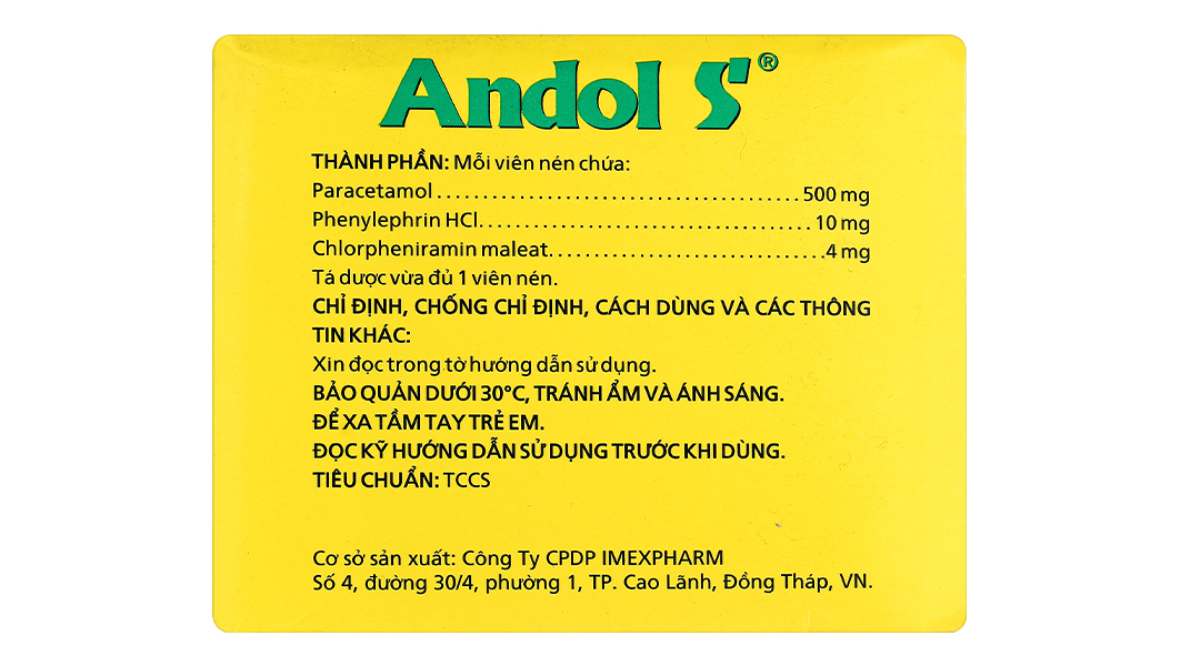 Andol S trị các triệu chứng cảm (25 vỉ x 20 viên)