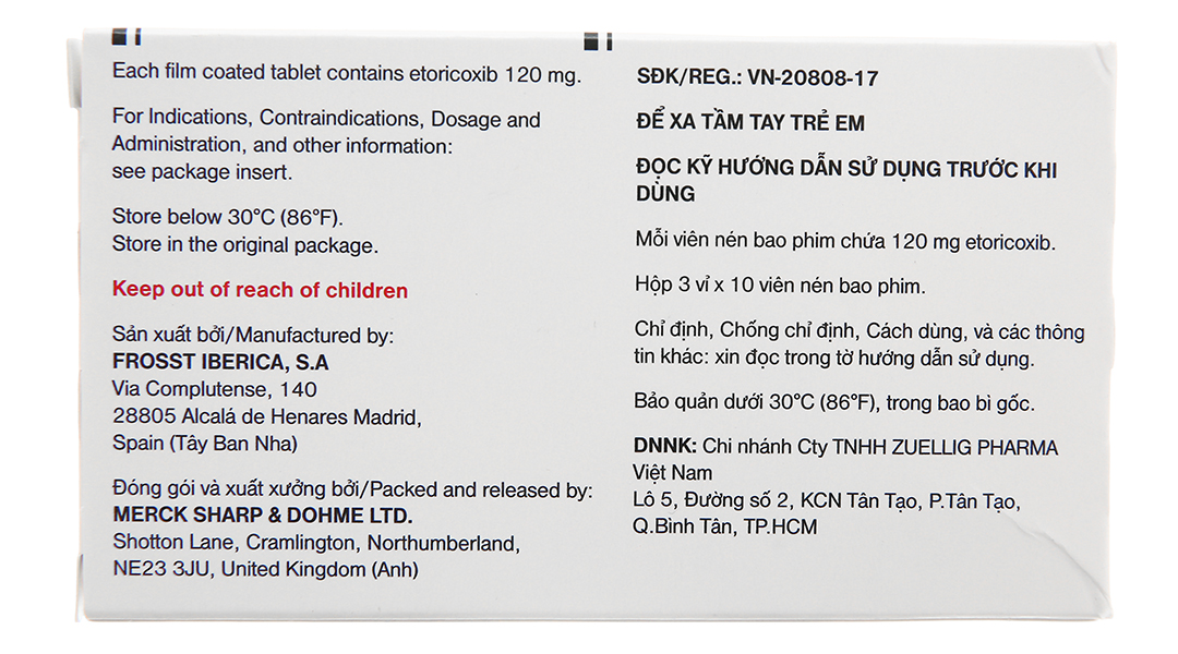 Arcoxia 120mg trị thoái hóa khớp, viêm khớp dạng thấp (3 vỉ x 10 viên)
