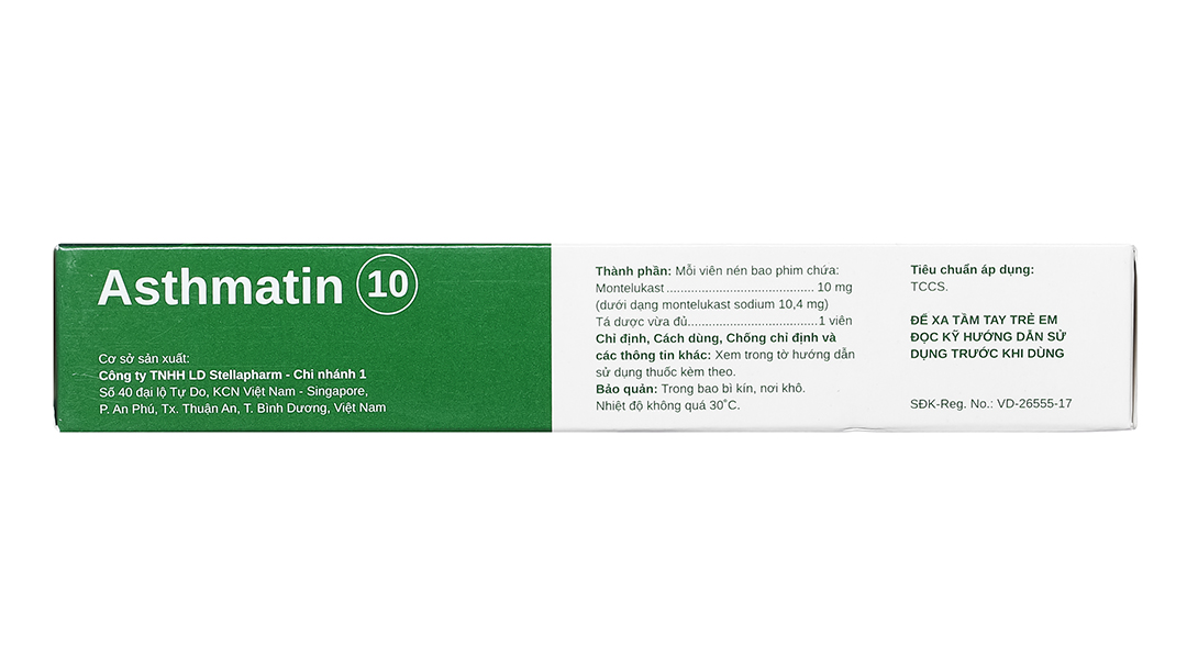 - Asthmatin 10 nên uống một lần mỗi ngày.