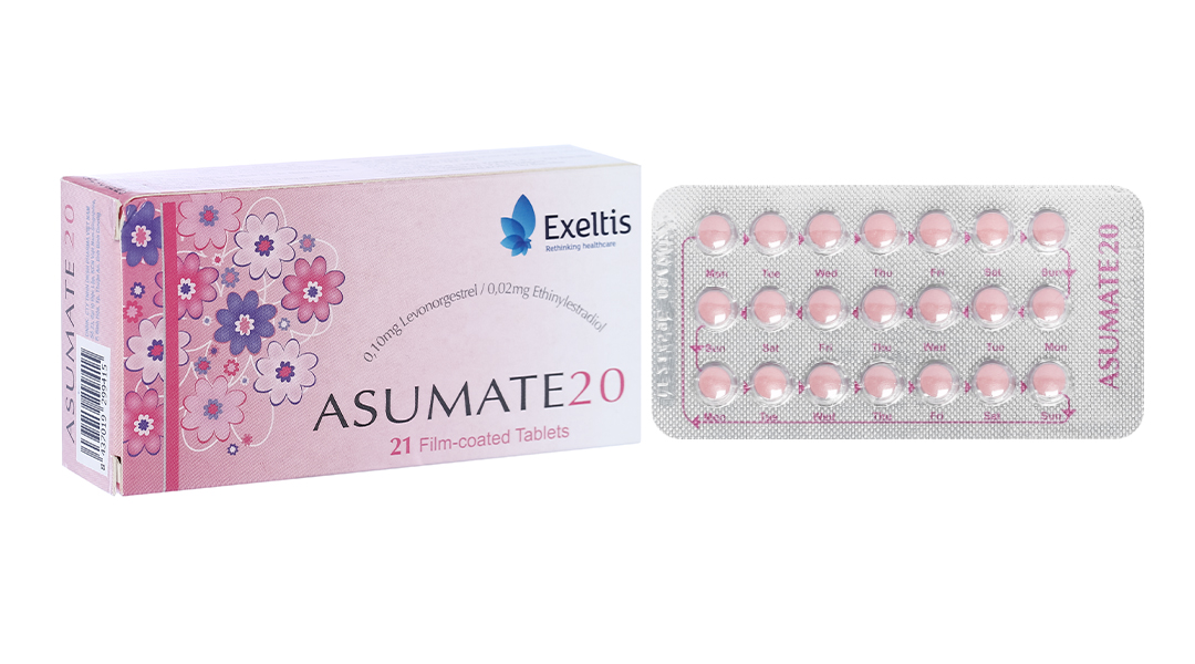 ASUMATE 20 là thuốc tránh thai kết hợp Ethinylestradiol và Levonorgestrel với tác dụng kháng androgen. Tác dụng tránh thai của thuốc dựa vào tương tác của nhiều yếu tố, quan trọng nhất là ức chế sự rụng trứng, làm thay đổi về chất nhầy cổ tử cung.