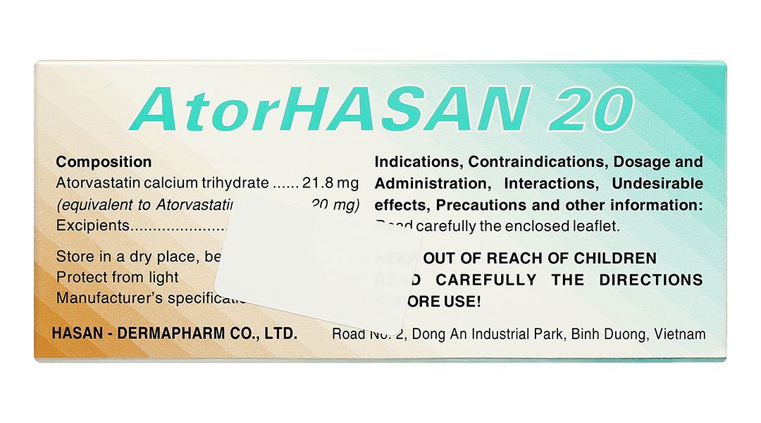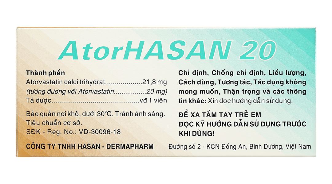 AtorHasan 20 điều trị tăng lipid huyết và dự phòng biến cố tim mạch (10 vỉ x 10 viên)