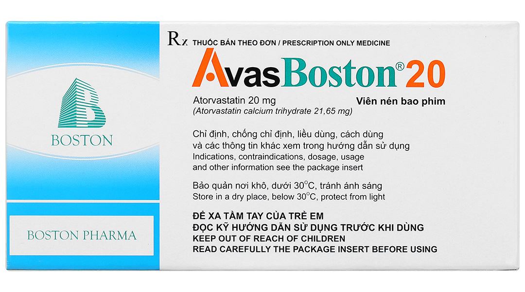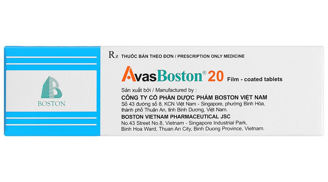 – Mô tả dạng bào chế AVASBOSTON 20: Viên nén hình oval, bao phim màu trắng, hai mặt khum, một mặt có chữ BOSTON một mặt có vạch ngang, cạnh và thành viên lành lặn.