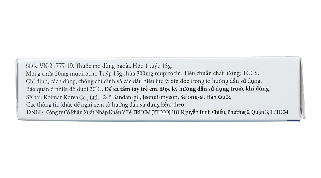 - Hoạt chất: 1g thuốc mỡ chứa 20mg Mupirocin.
