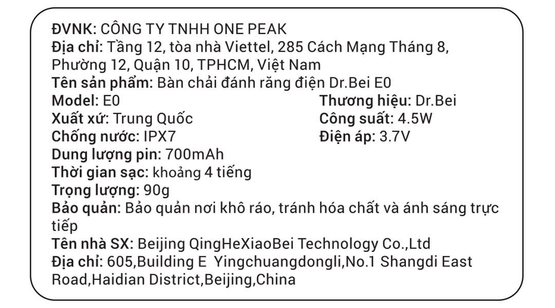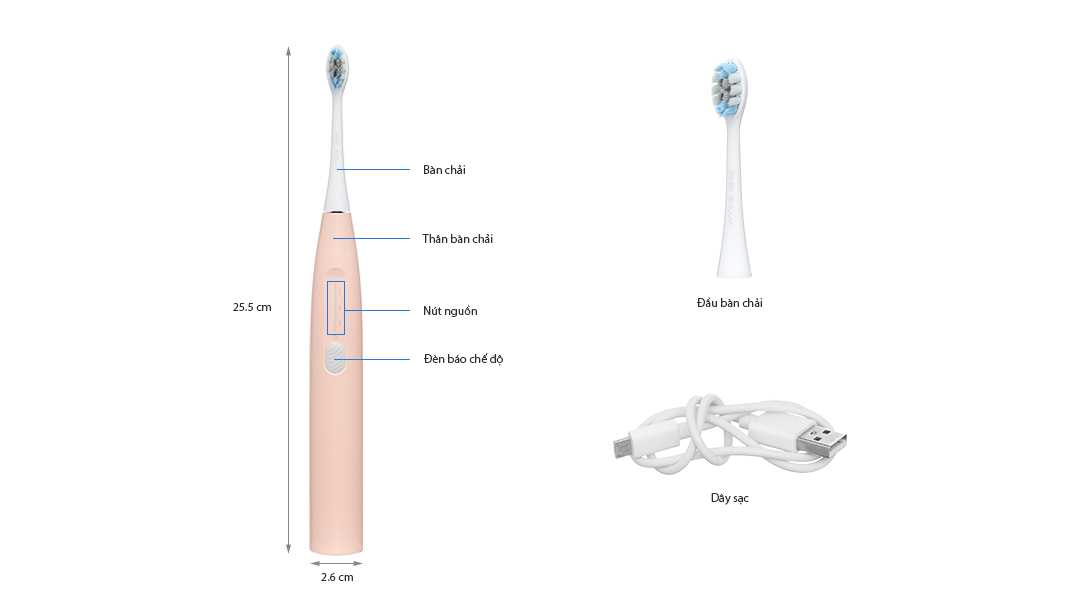 - Phương pháp sạc: Sử dụng củ sạc 5V để sạc bàn chải đánh răng.