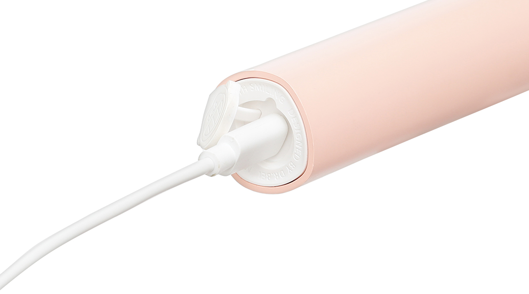- Đầu sạc điện Type-C nằm ở phần đáy bàn chải. Mở nắp để cắm dây sạc USB được đính kèm theo bộ sản phẩm.