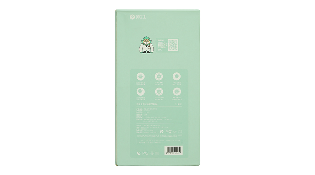 Bàn chải Dr.Bei E0 sử dụng công nghệ sóng siêu âm đồng thời có tần số rung có thể điều chỉnh lên đến 37800 lần/ phút giúp nhanh chóng đánh bay mảng bám so với bàn chải đánh răng thông thường. Ngoài ra, bàn chải điện Dr.Bei được trang bị cảnh báo thay đổi khu vực chải răng sau 30s và tự ngừng sau 2 phút theo khuyến cáo chải răng của các nha sĩ.