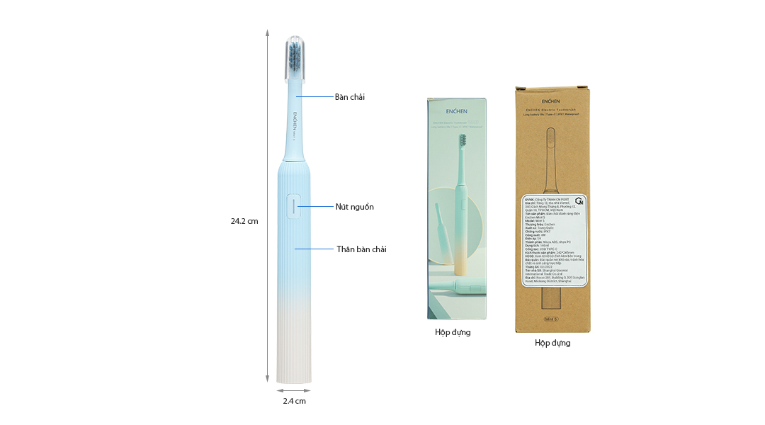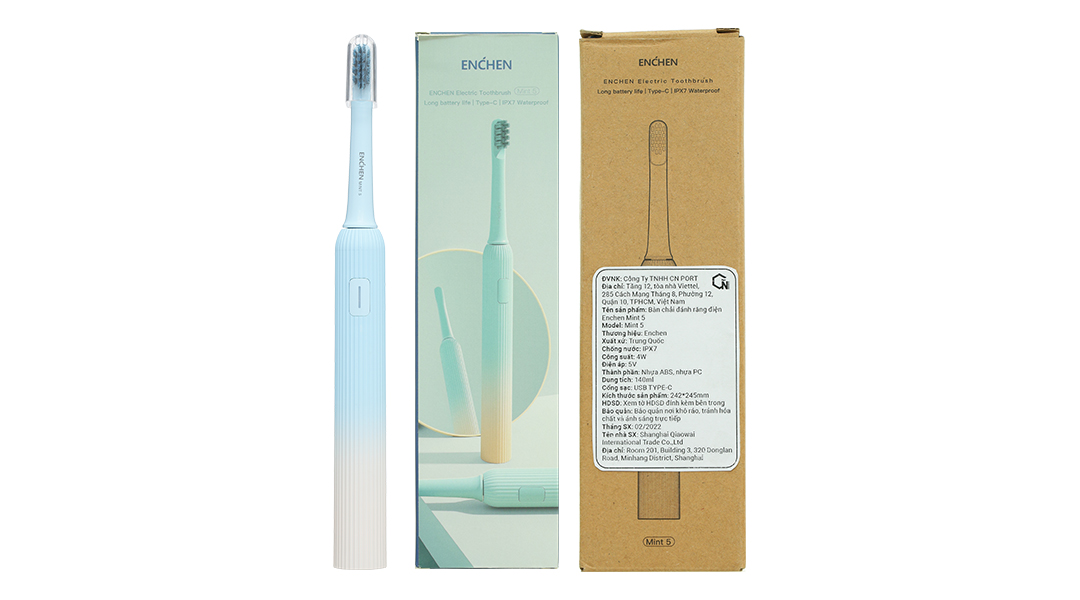Bàn chải điện Enchen Mint 5 màu sắc trang nhã, thời trang, ứng dụng công nghệ hiện đại làm sạch sâu mảng bám hiệu quả và bảo vệ nướu nhẹ nhàng. Bộ sản phẩm gồm một dây cắm sạc USB; một tay cầm bàn chải điện, một đầu bàn chải có thể dễ dàng thay thế định kỳ.