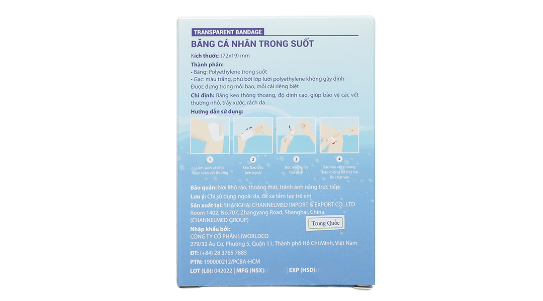 Băng cá nhân trong suốt Liworldco (72 x 19mm) hộp 20 miếng