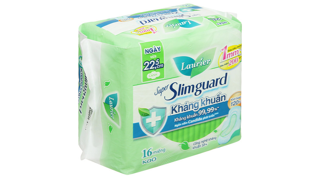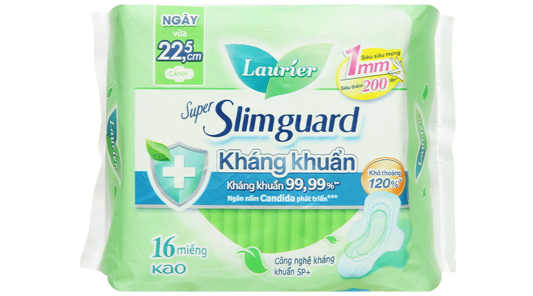 Băng vệ sinh Laurier Super Slimguard kháng khuẩn siêu siêu mỏng cánh gói 16 miếng