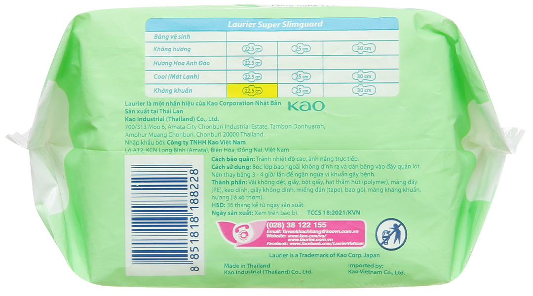 Đặc tínhSiêu thấm, Siêu mỏng, Kháng khuẩn, Kiểm soát mùi