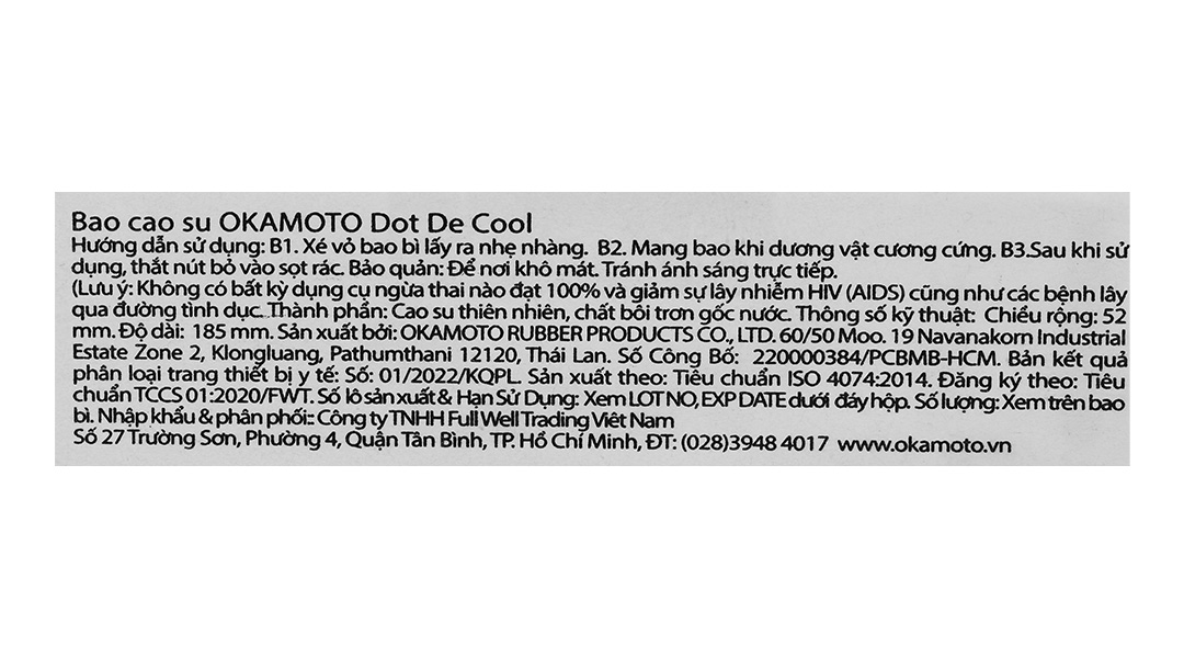 Bao cao su Okamoto Dot De Cool 52mm hộp 3 cái