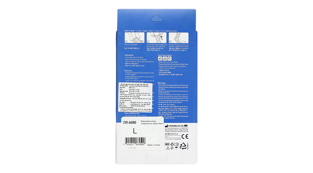 Bao đeo mắt cá chân Dr. Med DR-A090 size L là sản phẩm của tập đoàn công nghiệp AMI – HÀN QUỐC, một trong những nhà sản xuất hàng đầu trên thế giới về thiết bị, dụng cụ y tế chỉnh hình, thể thao và phục hồi chấn thương, được chứng nhận FDA, đạt tiêu chuẩn ISO 13485.
