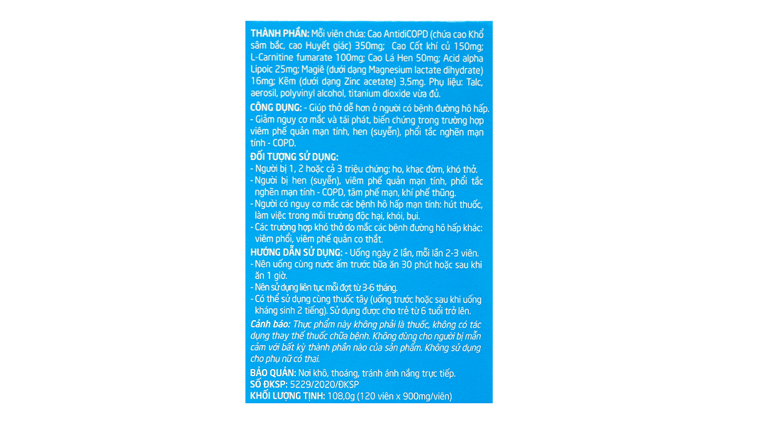 Cao AntidiCOPD (chứa cao Khổ sâm bắc, cao Huyết giác) | 350mg |