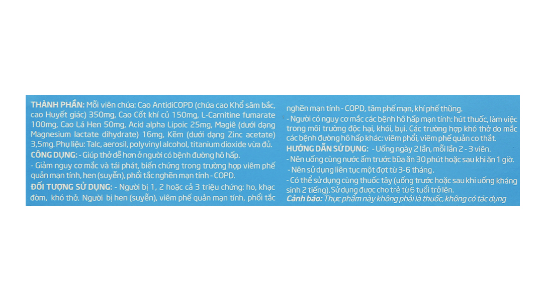 Công dụngGiảm nguy cơ mắc, tái phát biến chứng viêm phế quản mạn tính, hen, COPD,...