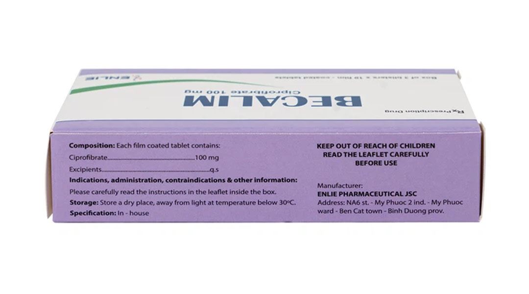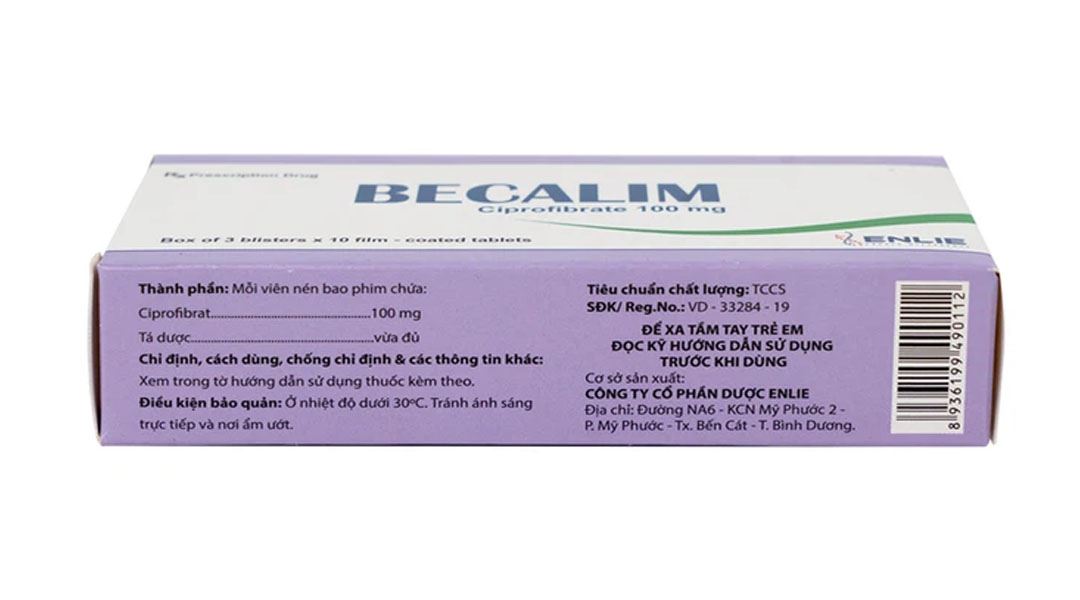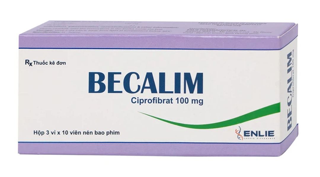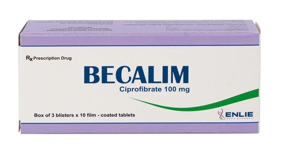 Becalim 100mg điều trị tăng triglycerid, tăng lipid máu (3 vỉ x 10 viên)