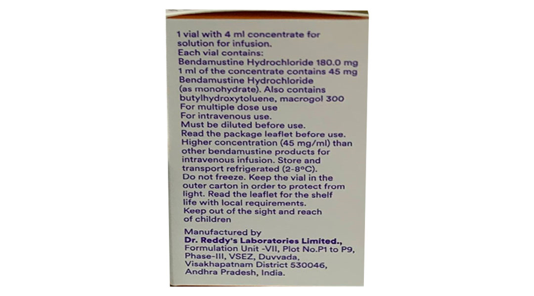 Khi pha loãng sản phẩm lưu ý rằng nồng độ (45mg/ml) của Bendamustin cao hơn so với nồng độ Bendamustin thường dùng do việc hoàn nguyên từ bột chứa các thành phần dược khác.