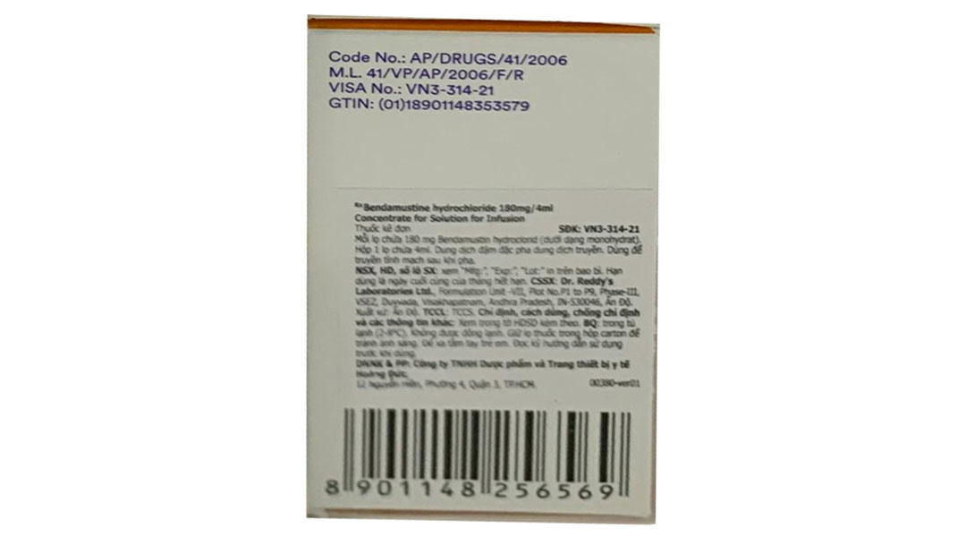 Mỗi lọ Bendamustine Hydroclorid Dr. Reddy’s 180mg/4ml chứa: