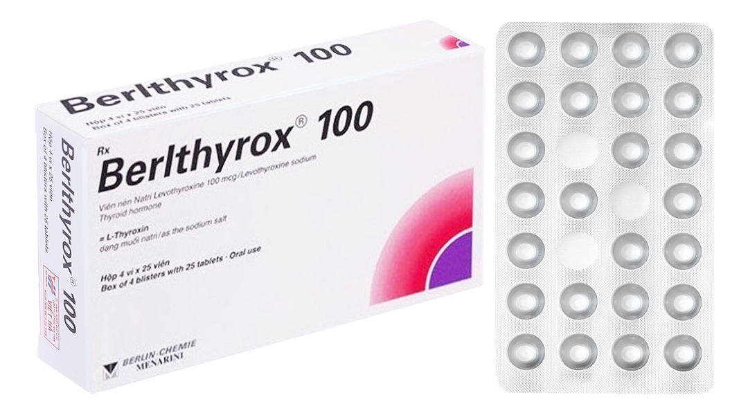 Berlthyrox 100 trị bệnh lý tuyến giáp (4 vỉ x 25 viên)