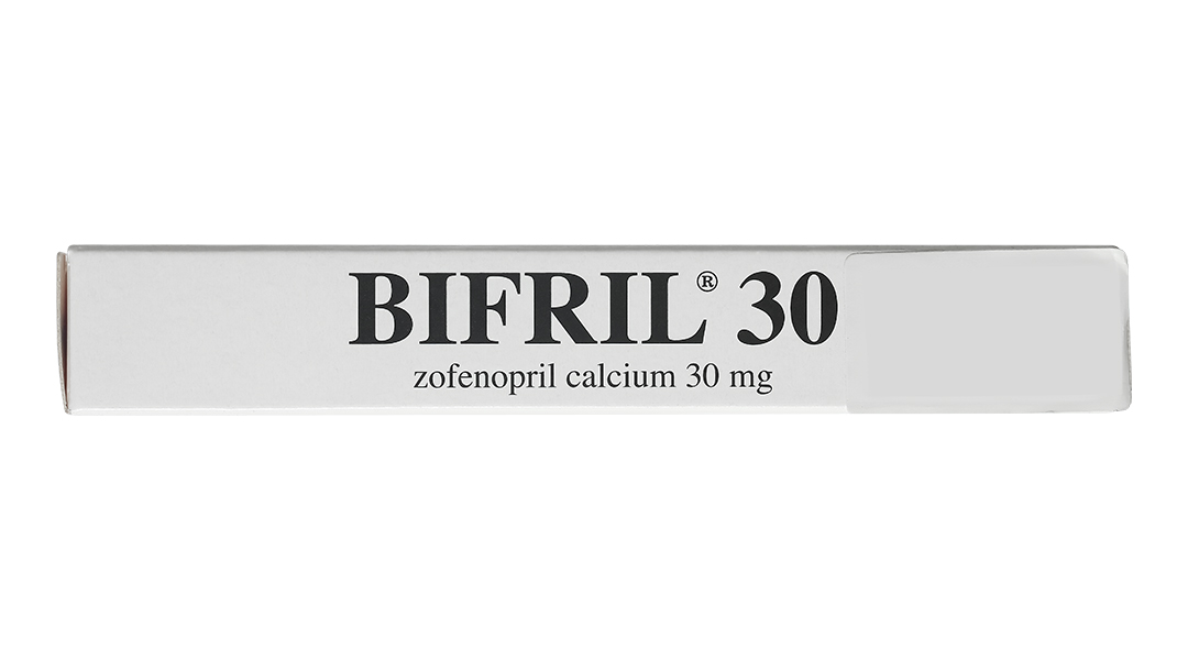 Một thử nghiệm lâm sàng ngẫu nhiên có đối chứng đã được thực hiện, so sánh zofenopril với giả dược được thực hiện trên 1556 bệnh nhân có tiền sử nhồi máu cơ tim và không được điều trị bằng phác đồ tiêu sợi huyết. Phác đồ được bắt đầu trong vòng 24 giờ và kéo dài trong 6 tuần. Tỷ suất xuất hiện tiêu chí đầu ra kết hợp (suy tim nặng và/hoặc tử vong sau 6 tuần) giảm trên nhóm bệnh nhân điều trị bằng zofenopril (zofenopril 7,1%, giả dược 10,6%). Sau 1 năm, tỉ lệ sống được cải thiện trên nhóm bệnh nhân điều trị bằng Bifril.